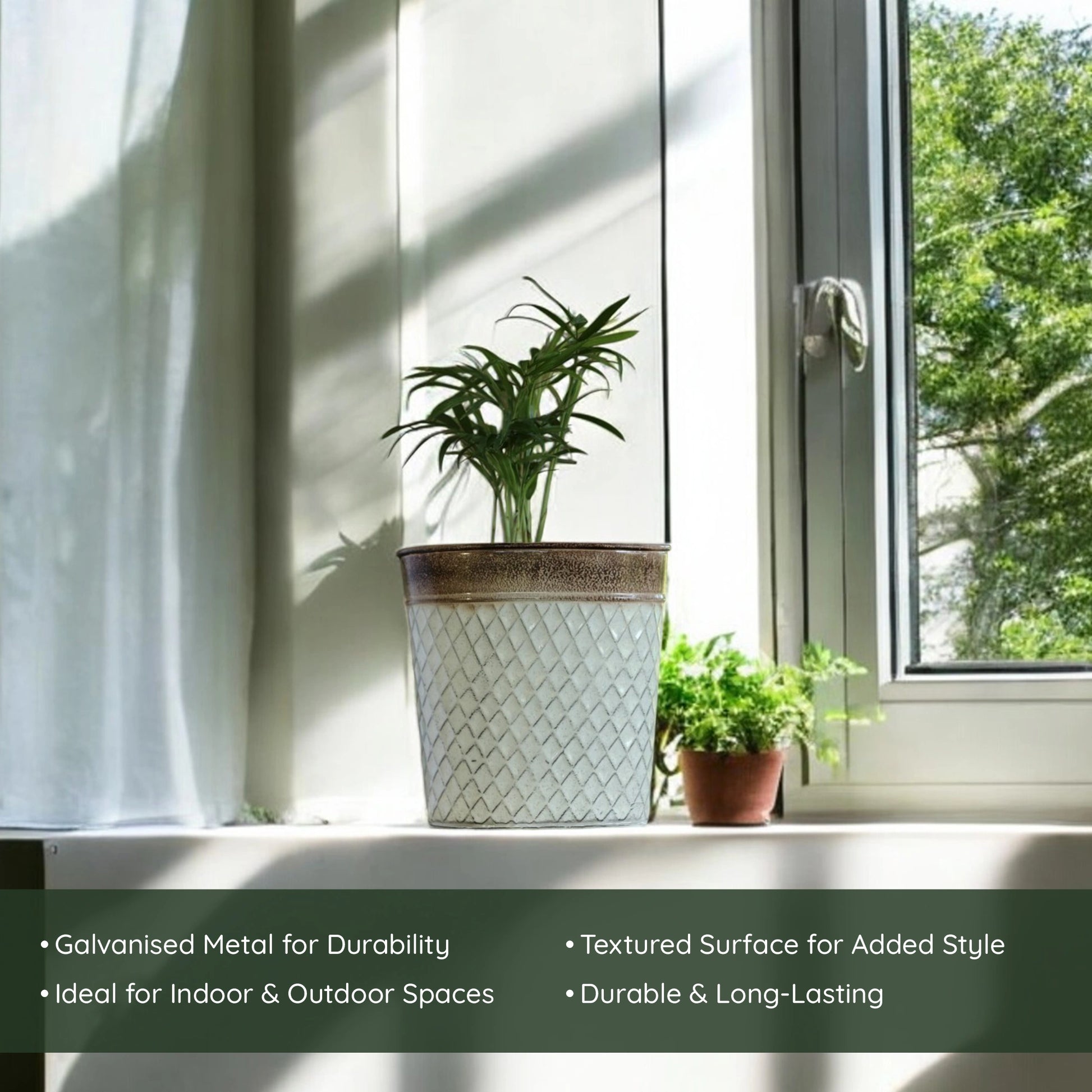 Definitely. Our planters are made from weather-resistant galvanised metal, so they’re perfect for both your living room and your garden. Rain or shine, they hold up beautifully.