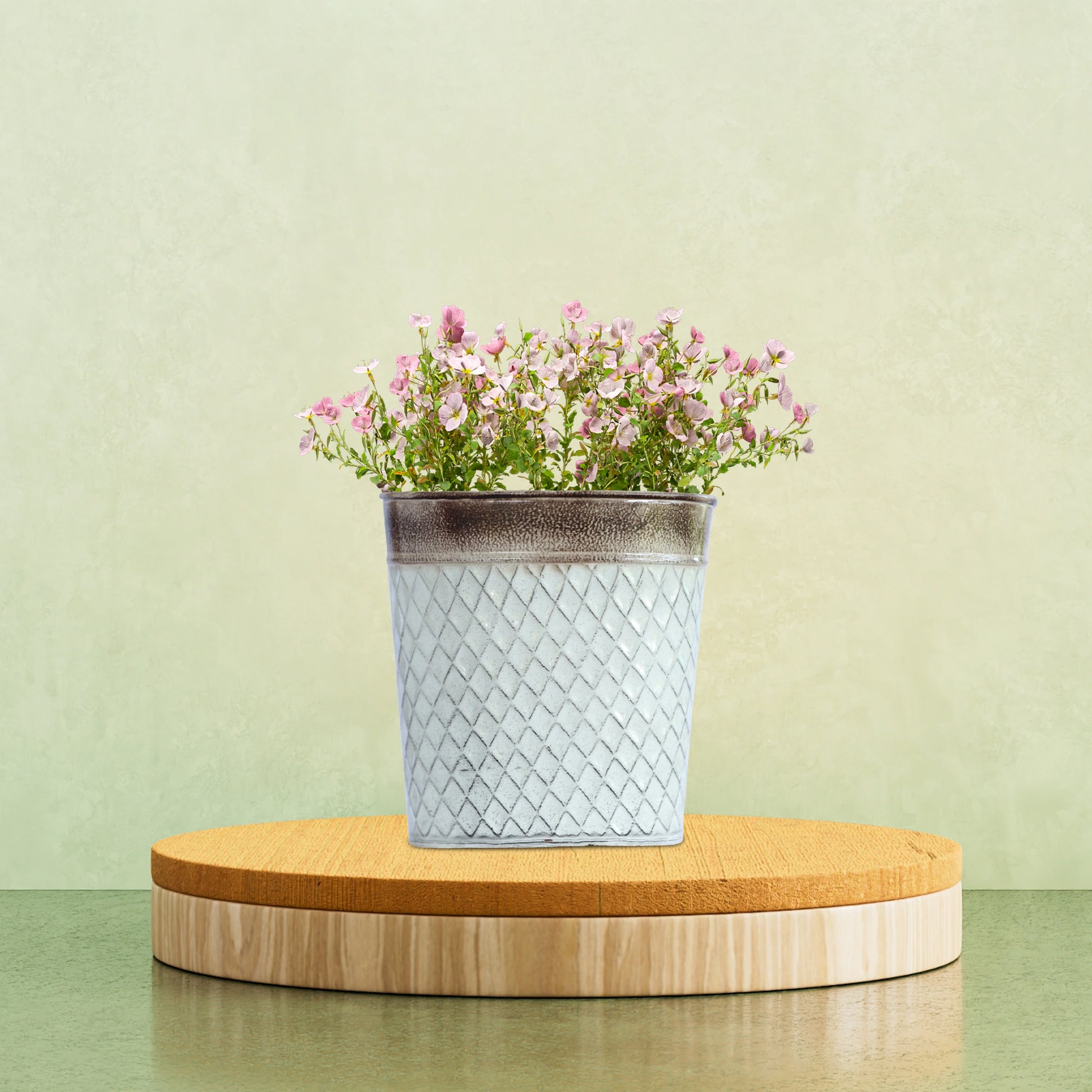 Add rustic elegance to your green space with The Happy Garden Galvanised Silver Planter. This stylish piece is designed with a rich copper-toned rim and a durable, textured galvanised body that blends sophistication with durability. Whether you place it in your living room, on a balcony, or in the garden, it brings timeless charm to any plant setup. Its versatile size makes it perfect for displaying herbs, succulents, or small decorative plants. A unique fusion of form and function, this planter is sure to elevate any space.