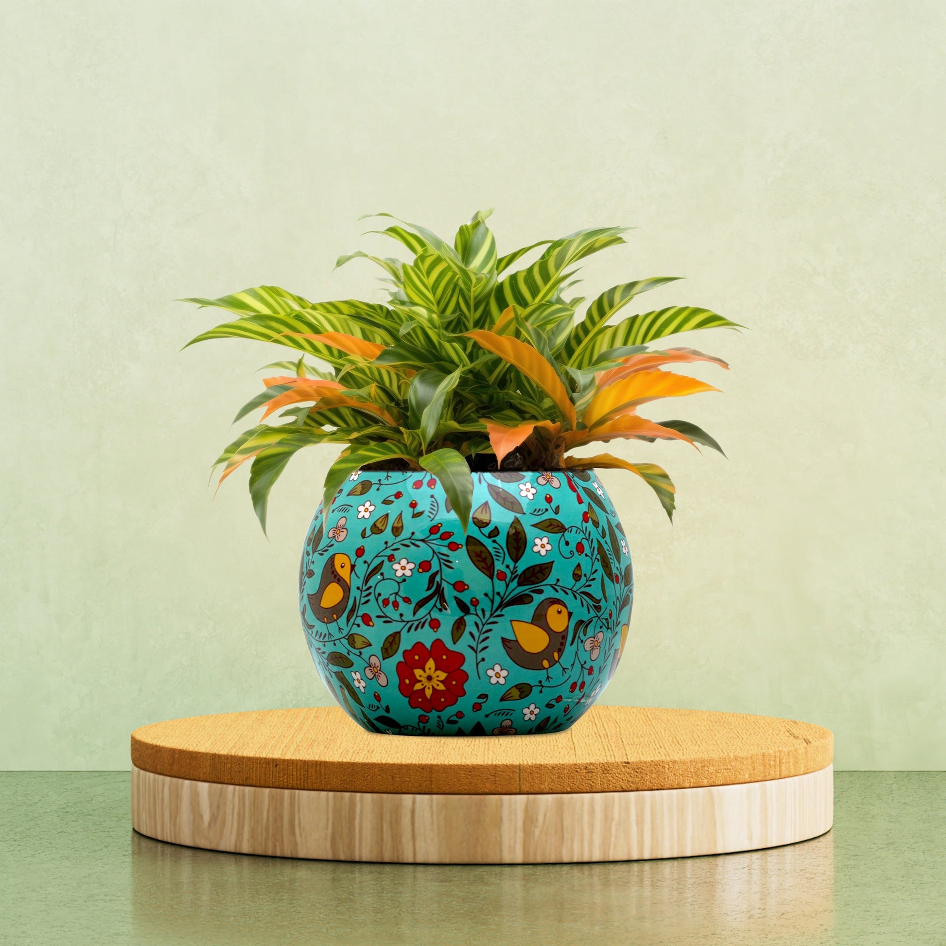 Add a pop of colour and creativity to your space with The Happy Garden Galvanised Printed Ball Pot. Beautifully hand-painted with detailed floral motifs and playful birds, this eye-catching planter is more than just a plant holder—it’s a decorative statement. The charming round shape and cheerful design make it perfect for displaying small plants or simply brightening up a corner of your home, balcony, or garden. Made from durable galvanised metal, it’s built to last through seasons of sunshine and style.