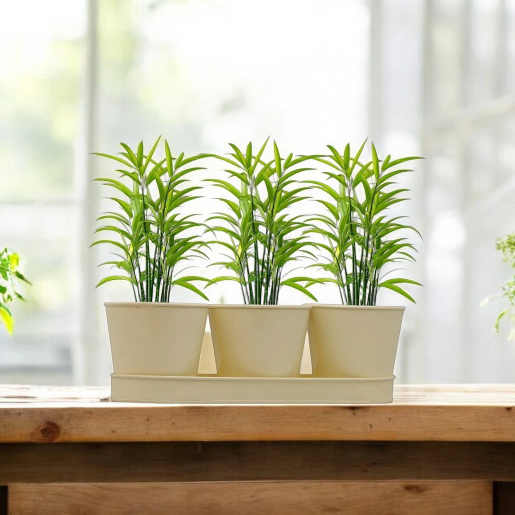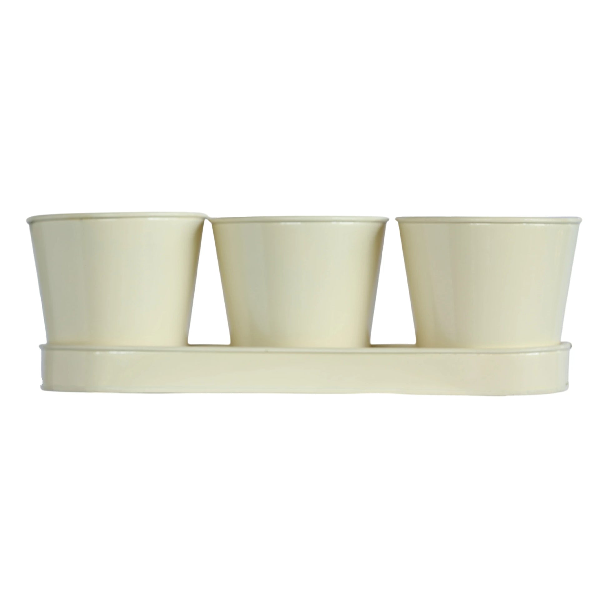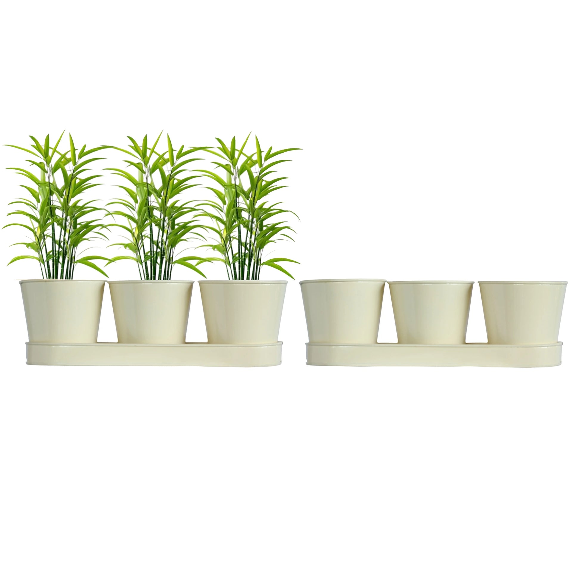 1. Stylish Herb Pot Set: Includes 3 matching cream pots with a coordinating tray for an elegant plant display.